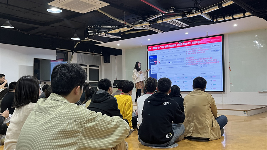 高手論劍,必定人頭攢動,求知的渴望充盈在每一個角落。簡短的自我介紹結束后,正式進入到培訓環節,主講人——品牌策略中心凝曄從DMP報表使用、洞察貨品分析機會點、人群管理/分析、DMP數據實用應戰四大板塊為大家帶來的分析講解,分享過程中自信張揚,火力全開。