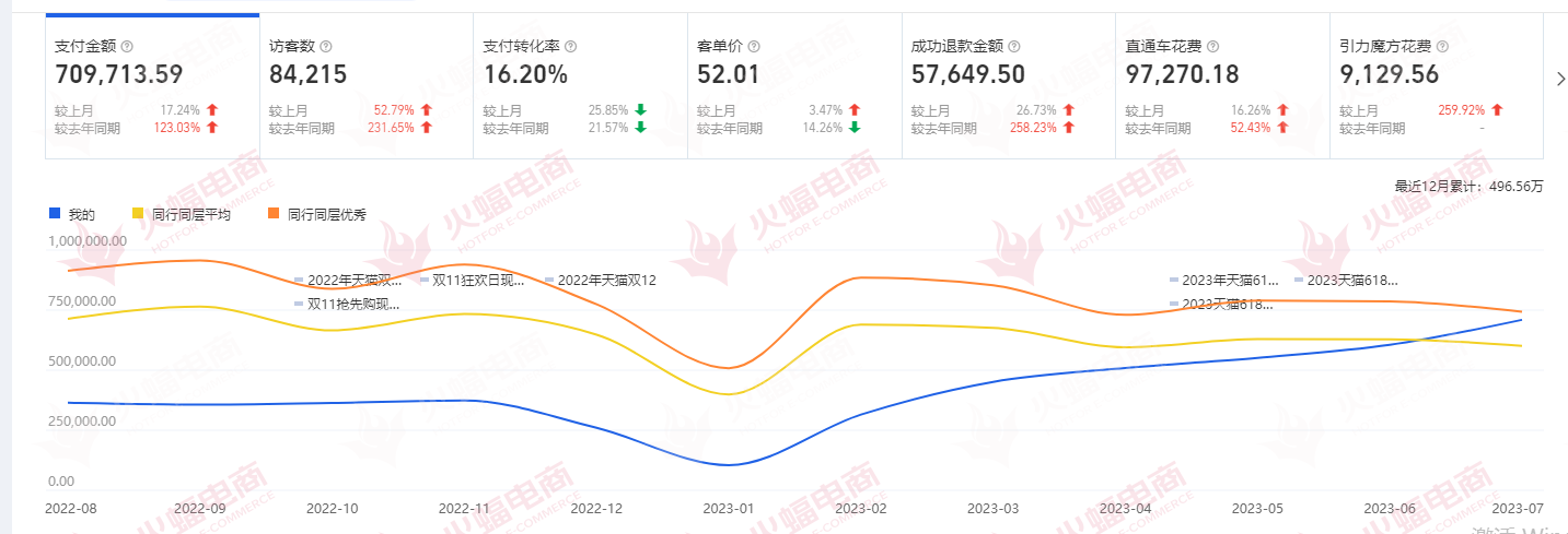 另外,在店鋪付費渠道方面,運營團隊發現,前期推廣只開啟了直通車推送,太依賴“搜索流量”,導致PPC太高ROI偏低?!啊蓖ㄜ嚒m用于搜索渠道,但并不能完全覆蓋全部流量入口和用戶。如果只靠‘直通車’,就會錯失潛在顧客。而有了‘引力魔方’在推薦渠道和‘萬相臺’全渠道上的補充,覆蓋面會更廣更全。”臺轍(花名)提到,如今單一推廣模式已經過時了,全渠道結合才是未來。接手后,對“直引萬”三個付費版塊比重也做了重新調整,進行多重布局,細分店鋪品類計劃,通過“直引萬”多渠道結合,7月新訪客上升14%。