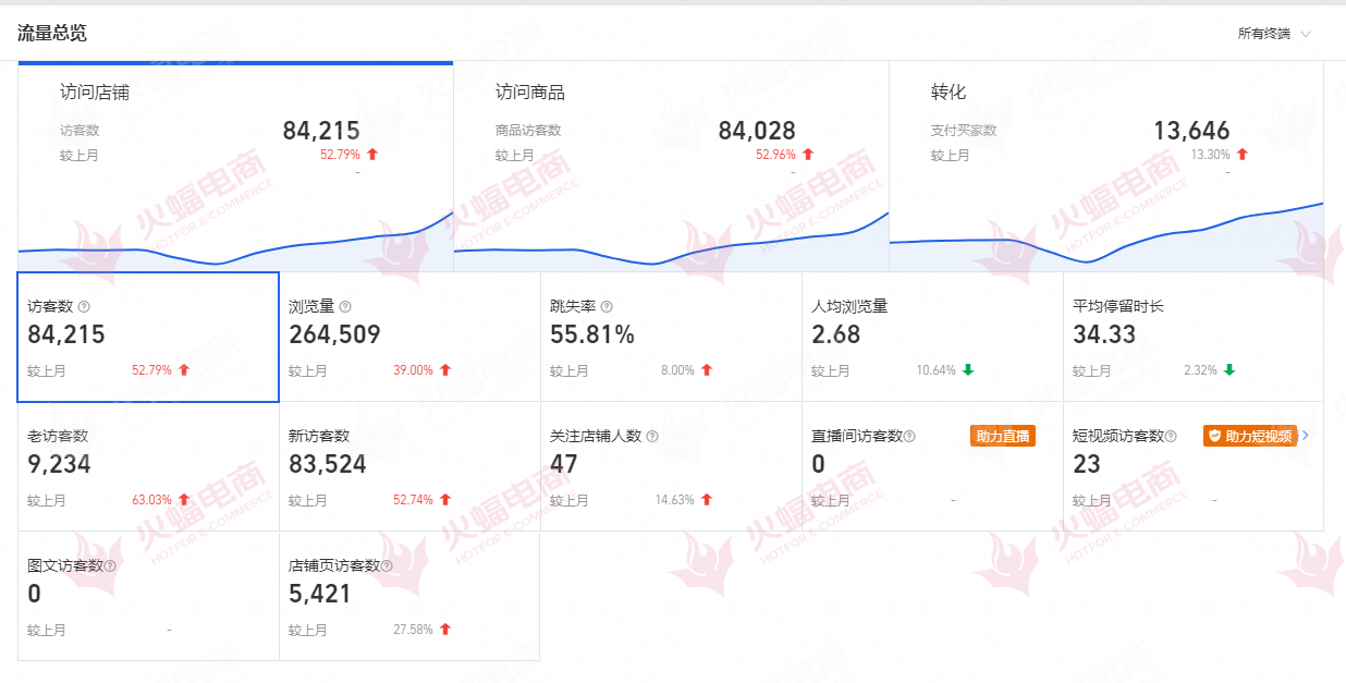 廣闊的商業前景吸引大批從業者涌入,沖擊著原有的競爭格局?!皹俗R牌”商家李想(化名)的生意就受到流量下降,效益降低的影響,從而急需尋求新突破。面對變幻莫測的互聯網營銷陣地,傳統行業出身的他顯得力不從心,于是萌生“店鋪代運營”的想法。通過多方考量,最終選定“淘寶六星級”運營服務商——武漢火蝠電子商務有限公司(以下簡稱“火蝠電商”)展開合作,在雙方配合下,7月份店鋪銷售額突破70萬,支付買家數提升13%,店鋪整體流量提升50%,運營效果顯著。另外據了解,該代運營公司成立9年來,服務過數百家知名品牌,成功案例達到數萬條,服務口碑深受行業認可。