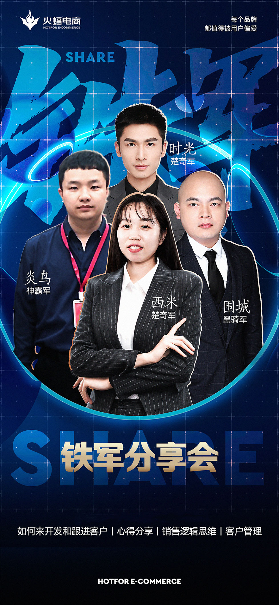 為提高一線作戰能力和理論水平,打造一支勇于創新、能堪當重任的鐵軍隊伍。近期,火蝠電商市場部于線上舉辦了鐵軍分享會。武漢總部,杭州分部與廣州分部的兄弟團們,在交流學習中又碰撞出了怎樣的火花呢?